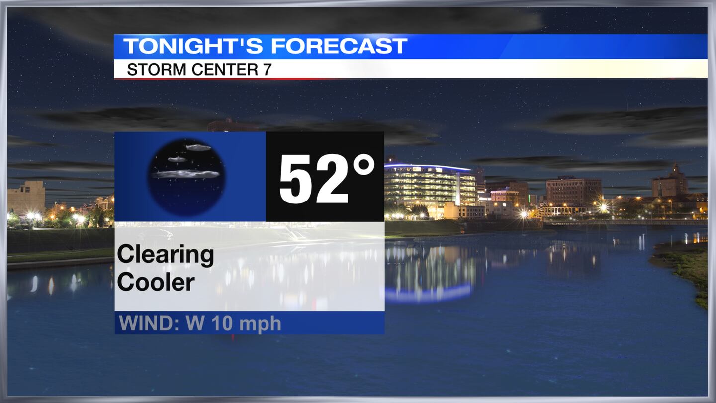 TONIGHT: Cloud cover decreases with cooler temperatures. Storm Center 7 Meteorologist Robert Gauthreaux says we will see lows drop to the low 50s.