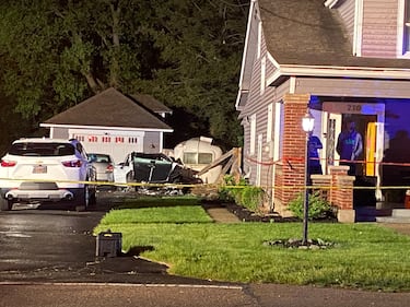 PHOTOS: Driver hits parked vehicle, slams into local home