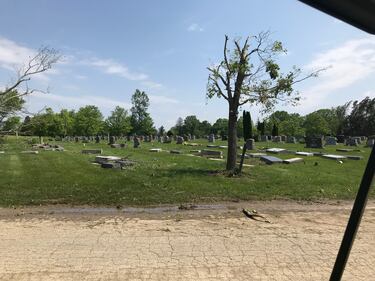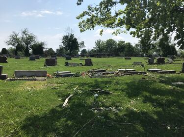 PHOTOS: Tornado-damaged communities dig out, clean up Tornado damage done to Dayton Memorial Park Cemetery and Mausoleums