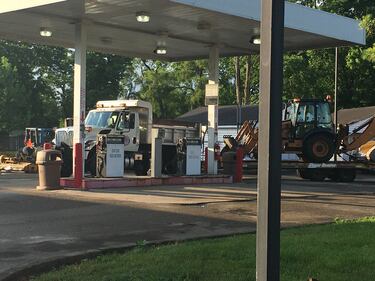 PHOTOS: Tornado-damaged communities dig out, clean up Vectren crews Staged in Beavercreek Friday morning.