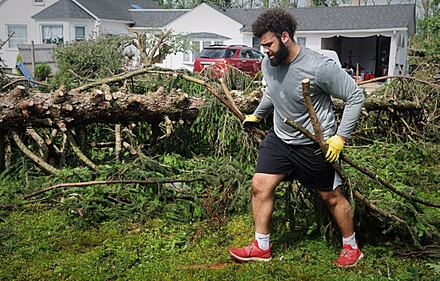 PHOTOS: Tornado-damaged communities dig out, clean up Miami football helps with cleanup of Beavercreek on Friday