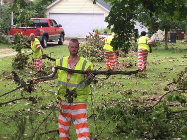 PHOTOS: Tornado-damaged communities dig out, clean up Harrison Township jail inmates help clean up