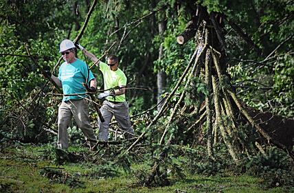 PHOTOS: Tornado-damaged communities dig out, clean up Power crews try to restore power on North Main Street