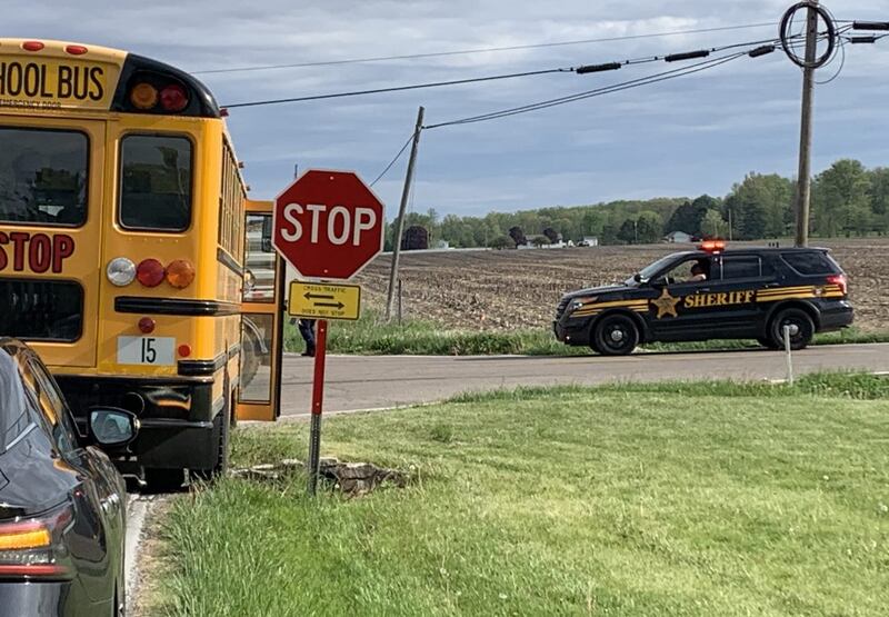 The initial investigation showed the school bus was heading north on Number Nine Rd. and stopped at the stop sign at the intersection with Upper Lewisburg-Salem Rd. The bus continued north through the intersection, failing to yield the right of way, and was hit by a vehicle going west on Upper Lewisburg-Salem Rd., the sheriff’s office said.