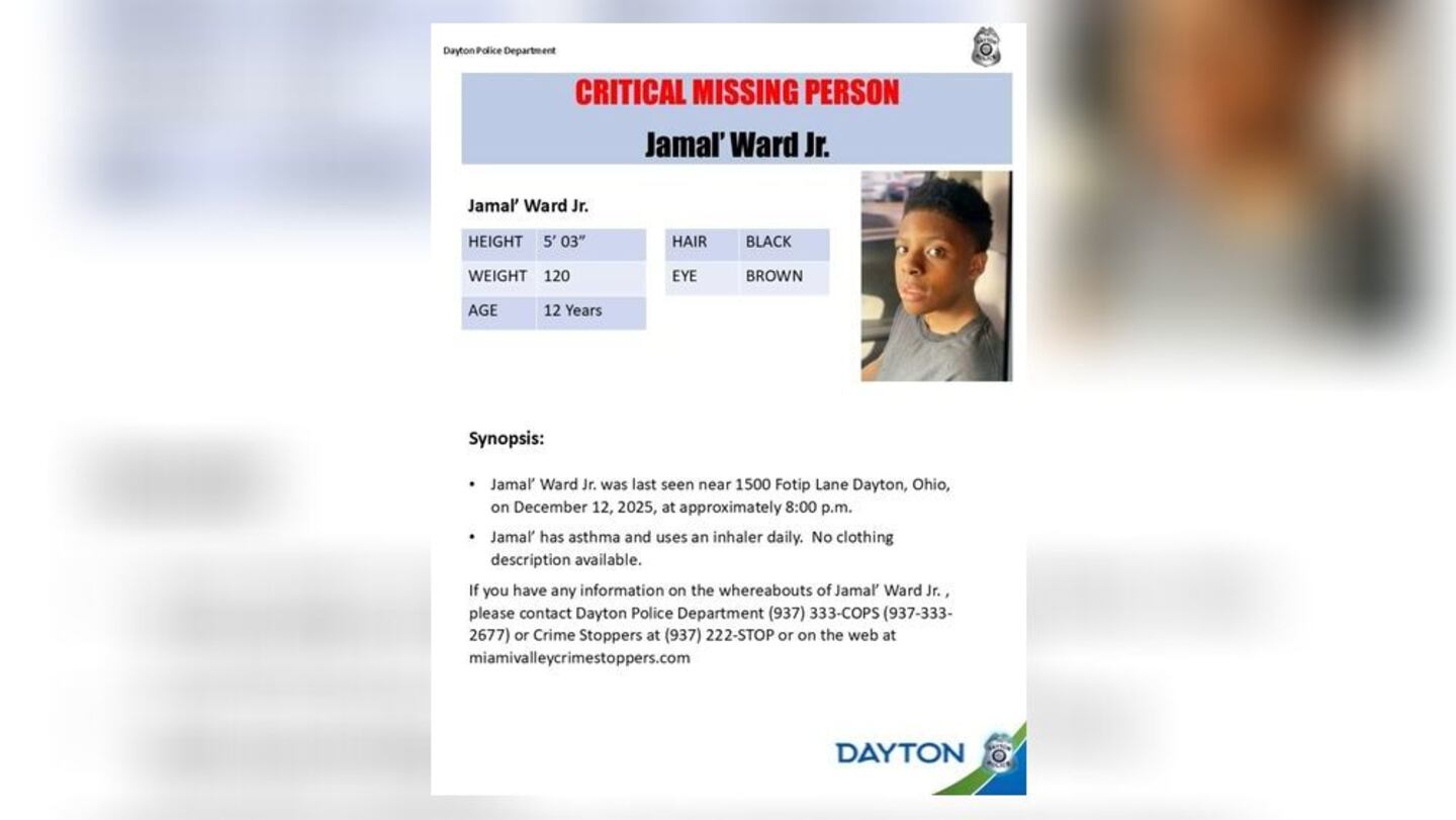 Dayton Police wrote in a social media post that they are searching for 12-year-old Jamal’ Ward Jr.