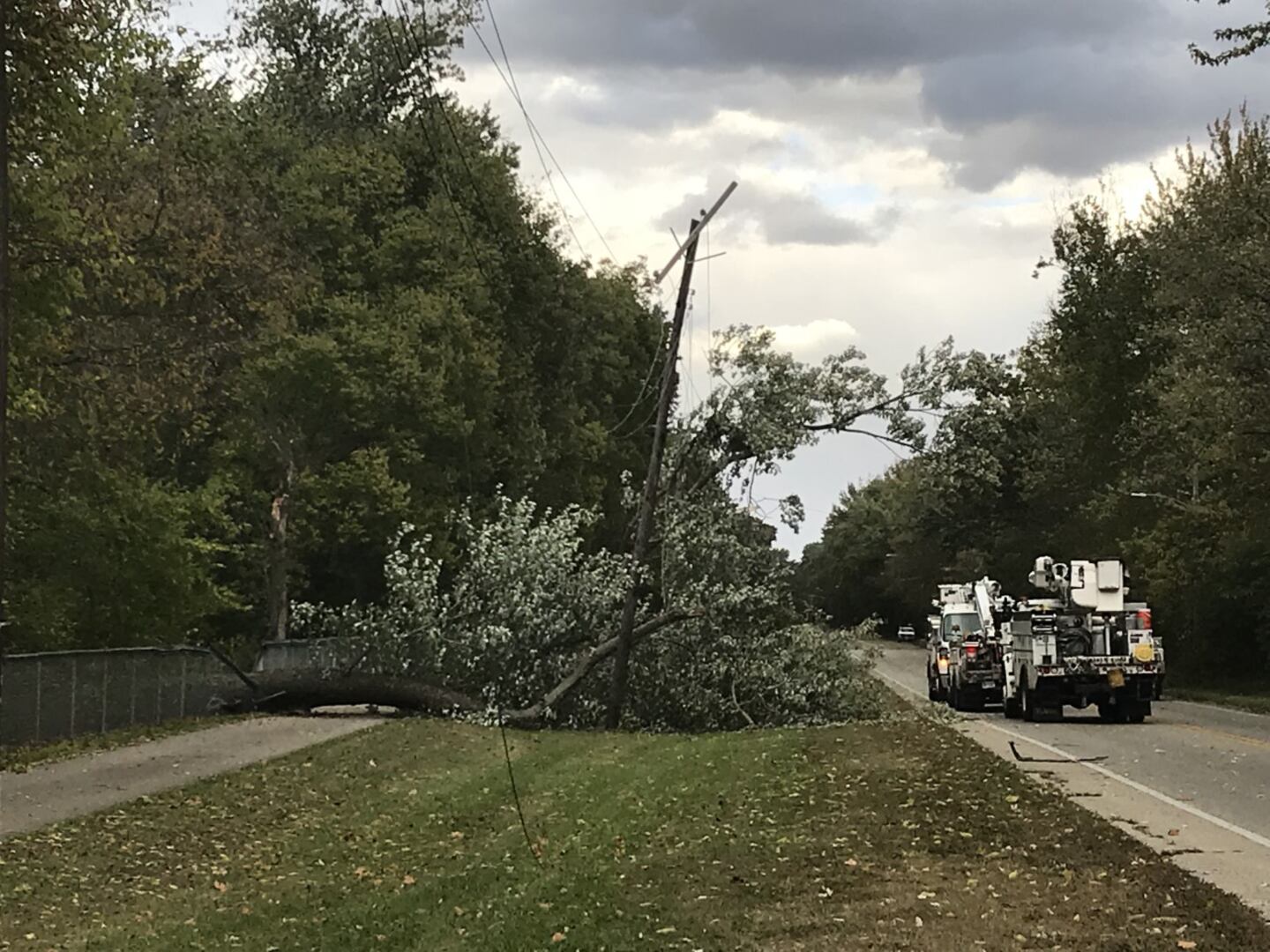 A tree fell onto power lines and a tree fell onto North Main Street in Miamisburg.