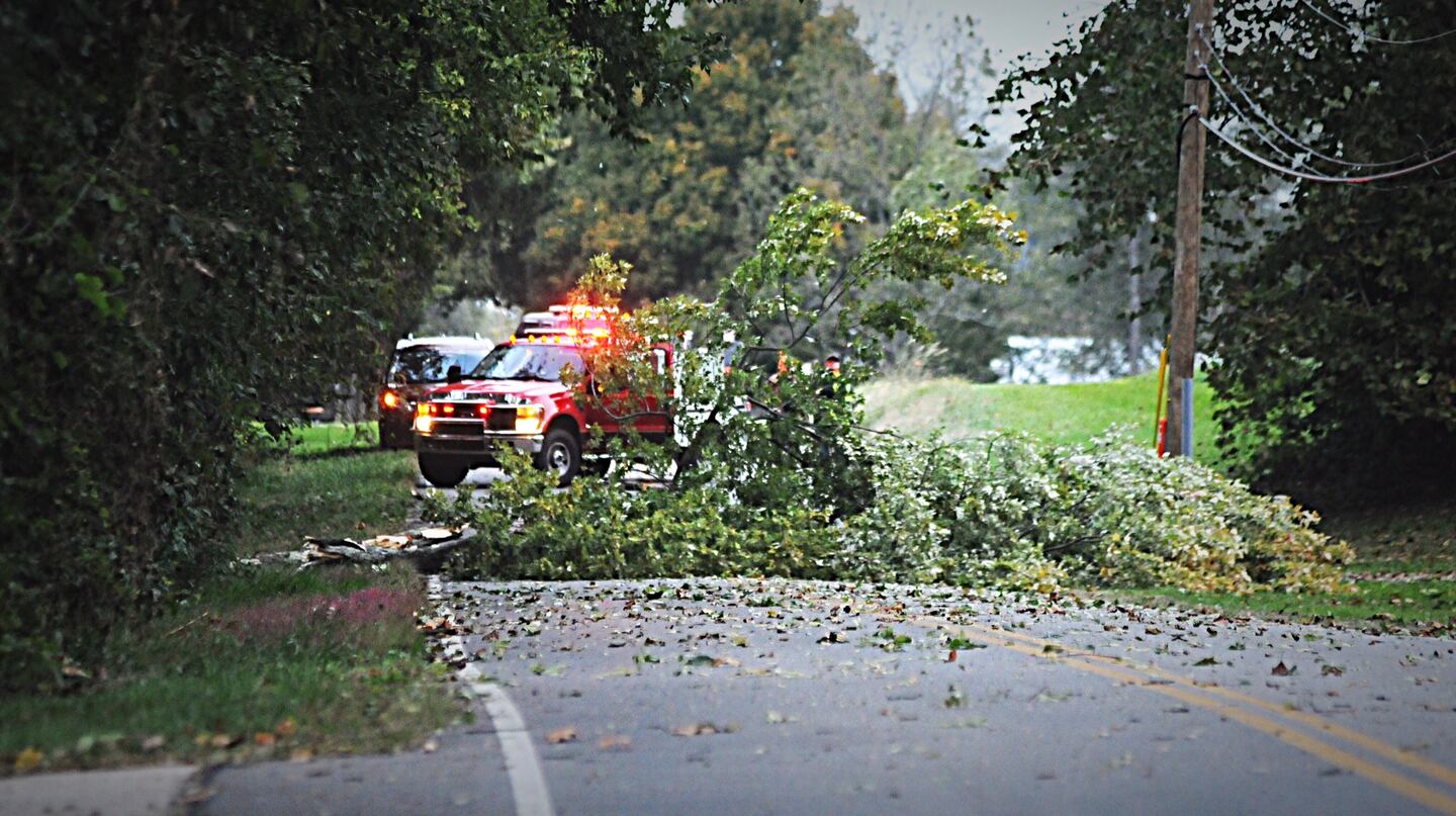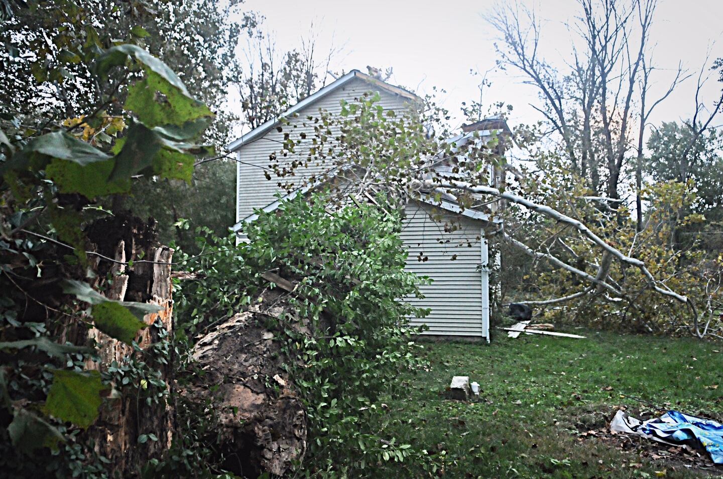 A tree fell onto a house while the resident was still inside and a tree also fell down across the road on Lake Road in Medway.