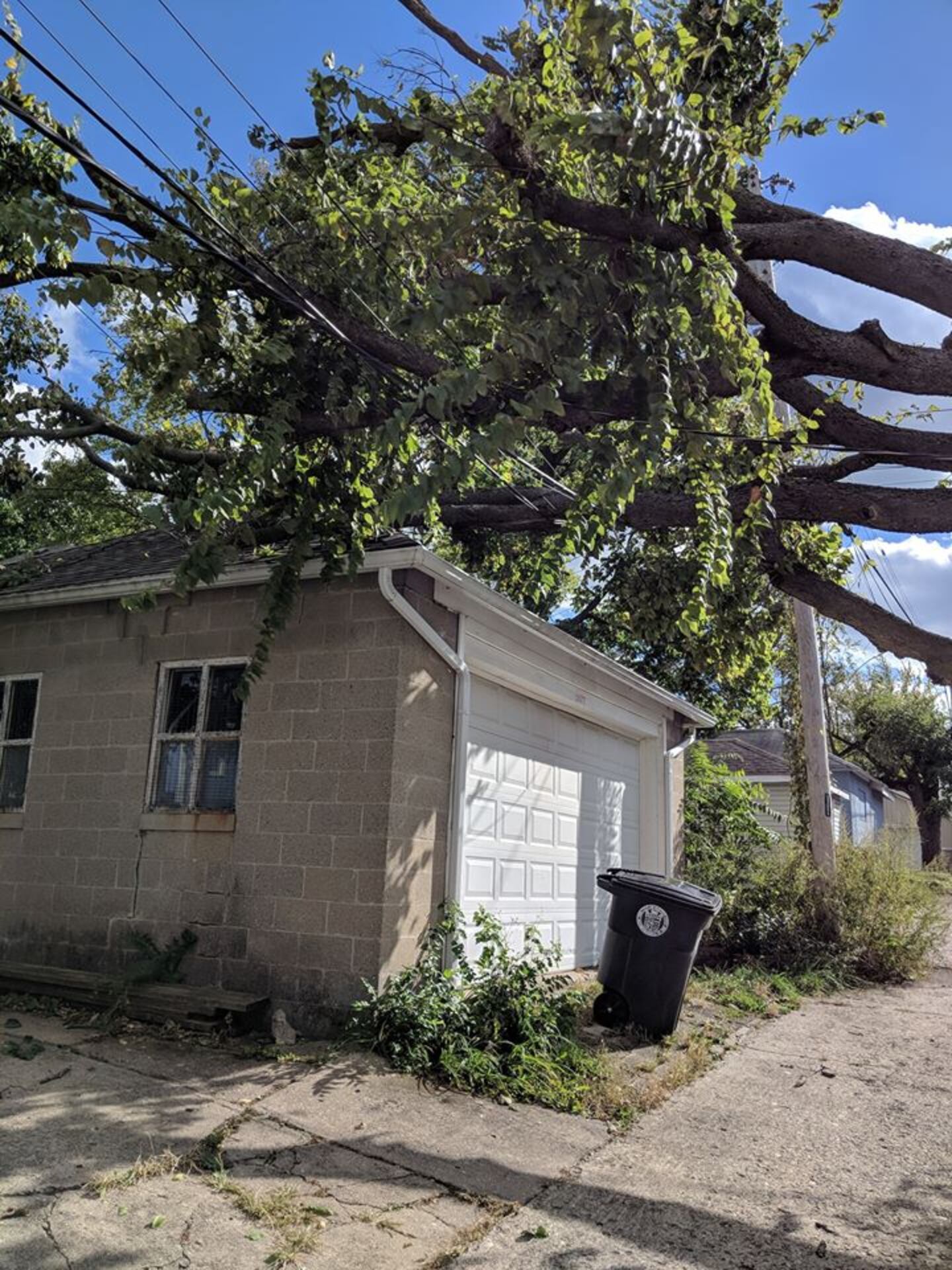 A tree fell across an alleyway and hit a power line in the 1000 block of Carlisle Avenue in Dayton at 3:10 p.m.