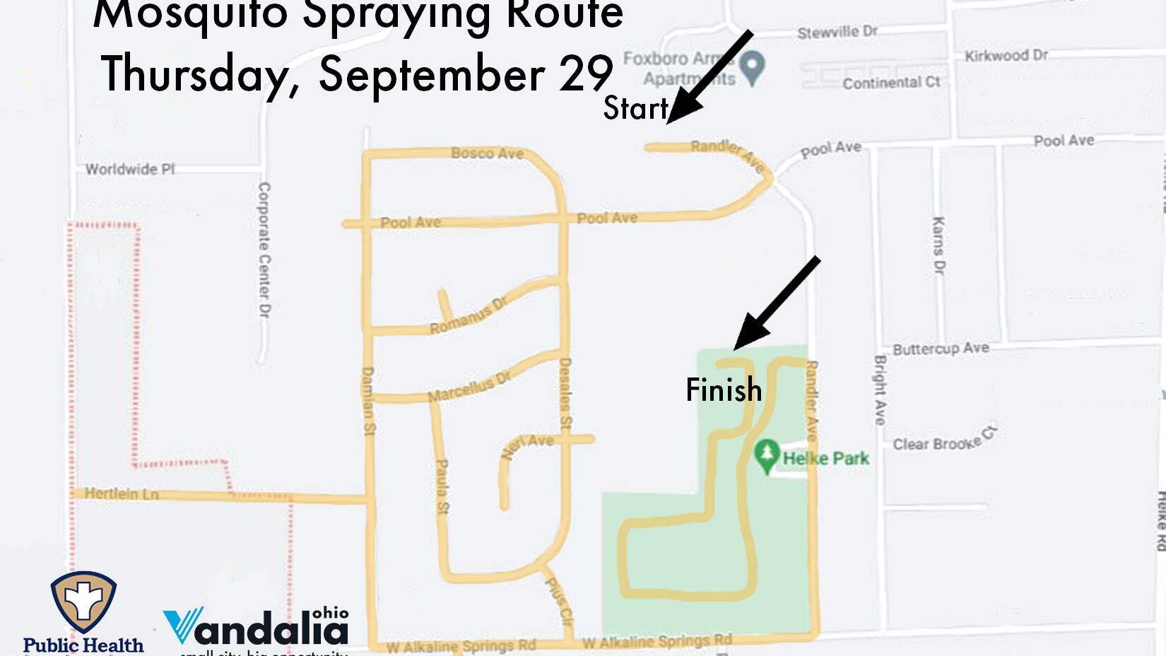 VANDALIA — Public Health- Dayton & Montgomery County will be spraying the area near Pool Road and Helke Park in Vandalia with a pesticide later today as a precaution after a mosquito tested positive for the West Nile virus, according to a post on the City of Vandalia’s Facebook page.