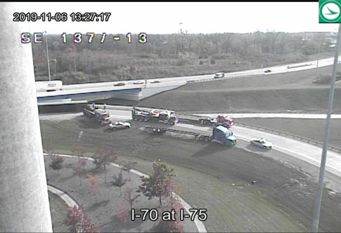A cargo container has fallen off a trailer on the eastbound I-70 ramp to northbound I-75 in Butler Twp.