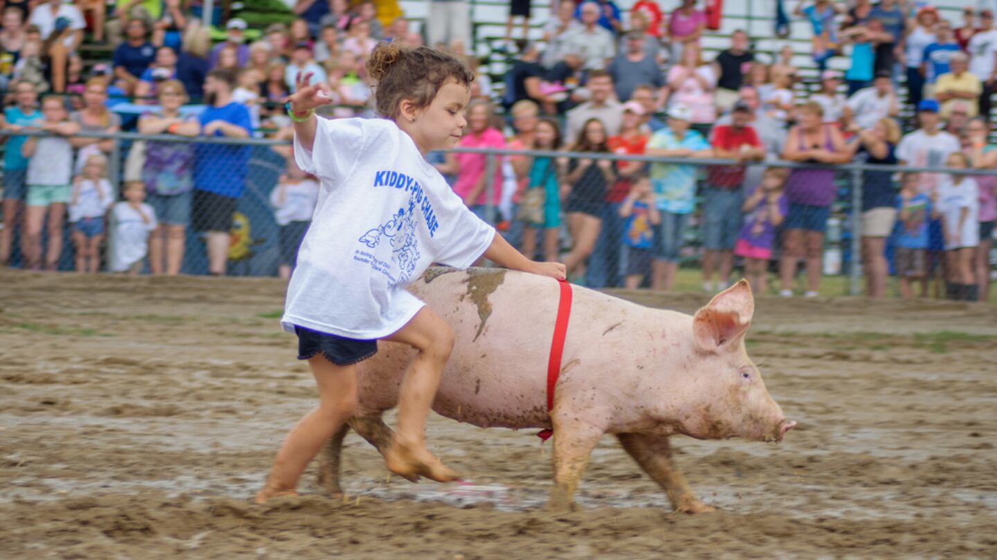 3. Pork Chop Review: As seen on "Good Morning America," a squad of spunky swine will put on a show featuring amazing stunts and laughable antics, including jumping hurdles, waltzing and singing. Whatever the gig, think pig! Also part of the midway entertainment, the Pork Chop Review will be held at various times during the afternoon and evening over the course of the fair.