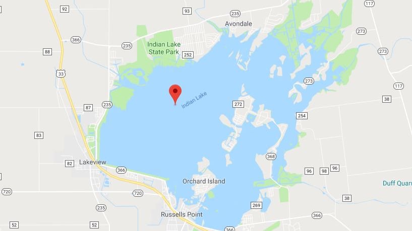 A rescue is occurring for a person said to have fallen through ice at Indian Lake in Logan County.