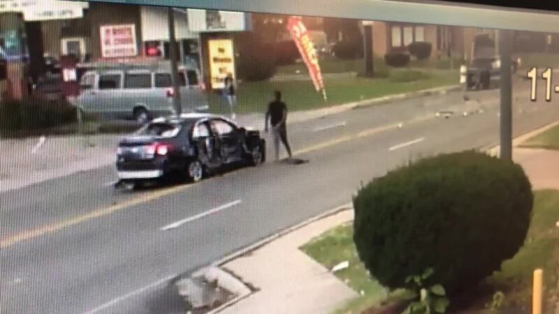 The driver of Impala fled but was quickly apprehended at the corner of Hillcrest and Grant avenues. The 23-year-old, whose name was not yet released, may have suffered a broken arm. Security video from DJ’s Furniture showed the man running from the crash. He later was loaded into the back of an ambulance.