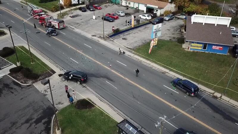 At least five medic units responded to the crash involving three vehicles around 12:30 p.m. Crash reconstruction units remain on the scene investigating the incident.