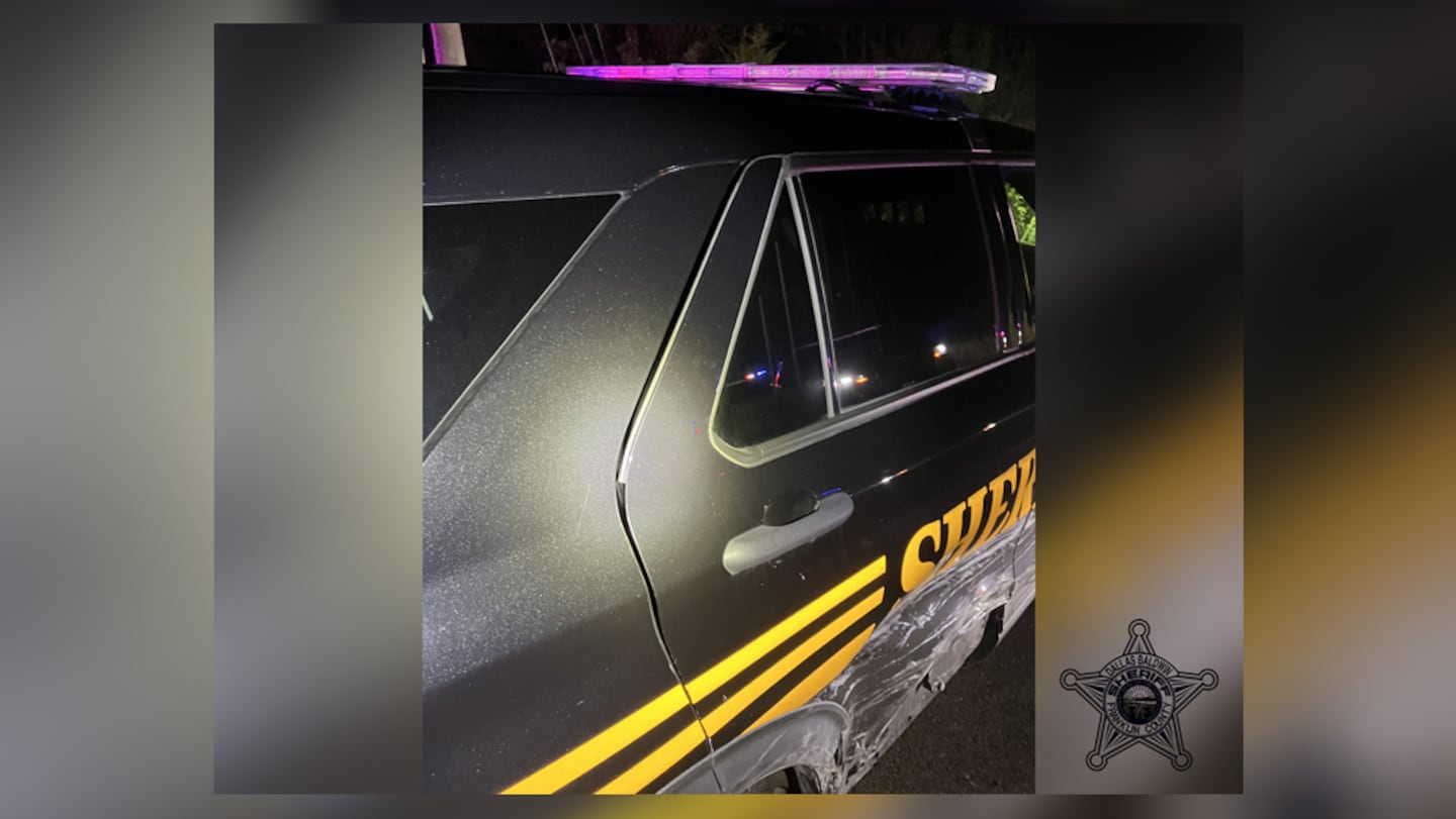 The sheriff’s office posted photos of the damaged cruiser on its Facebook page. It showed that the cruiser got sideswiped.