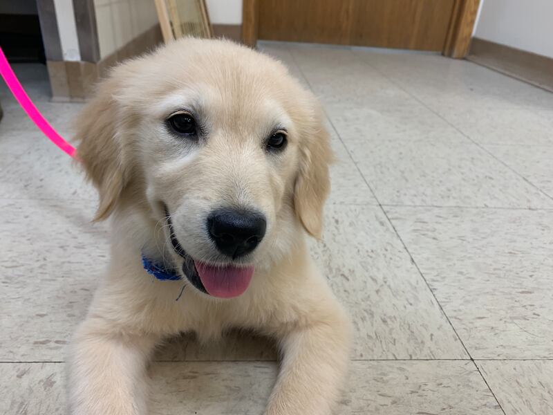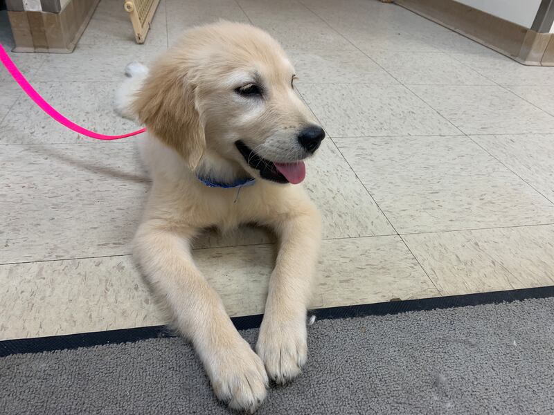 Bert Diegel, who works at the center, now cares for one of the puppies named Scarlett.