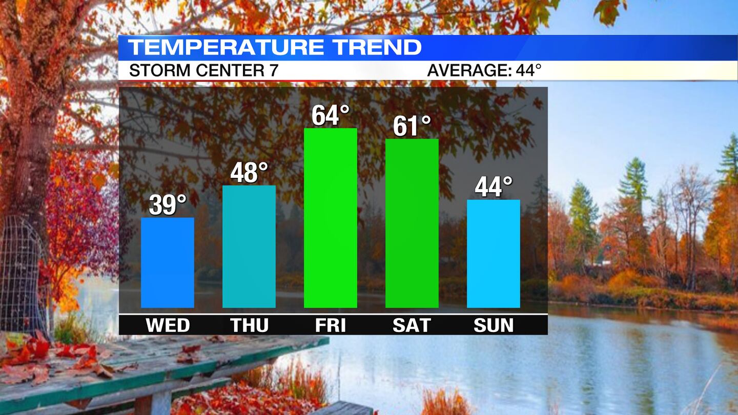 THURSDAY: Morning sun gives way to clouds on Thursday. Chance for a few showers around Thursday night. Highs return to the upper 40s.