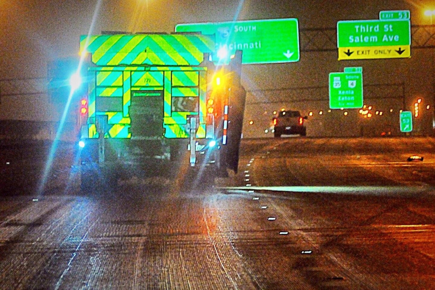- In Fairborn, on southbound I-675 and Ohio 444, a vehicle slid into the median around 7:55 a.m