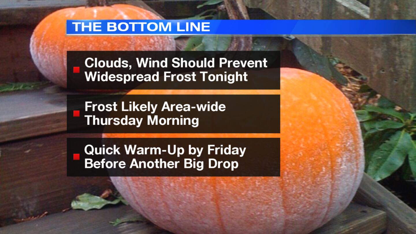 Thursday: Expect widespread morning frost to start the day with temperatures near freezing. Skies will be mostly sunny with high temperatures climbing into the upper 50s.