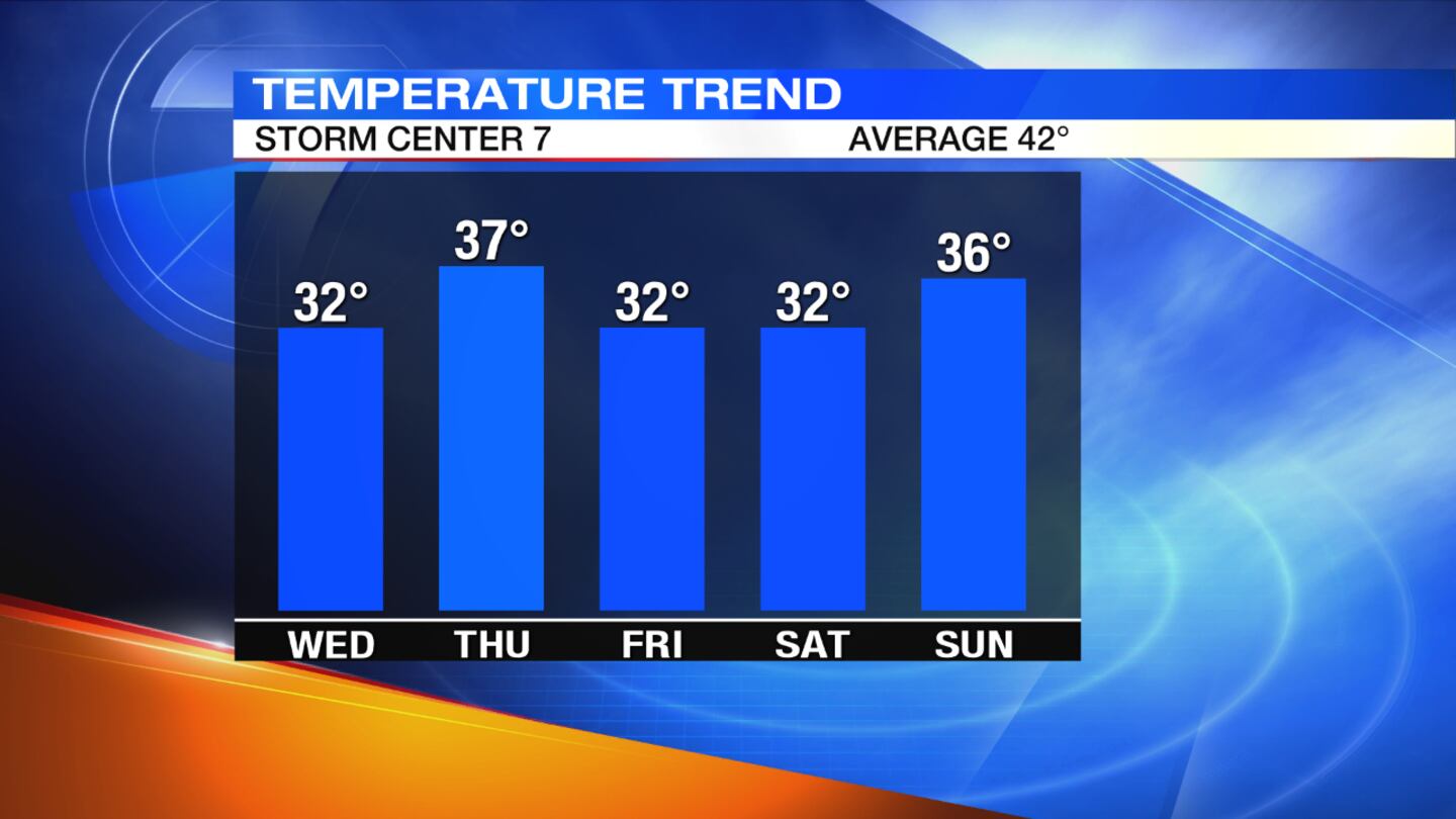 Overnight: It will be dry with some clouds around overnight with temperatures falling into the middle 20s by daybreak, Storm Center 7 Chief Meteorologist McCall Vrydaghs said. Winds will relax slightly, but wind chills remain in the teens.