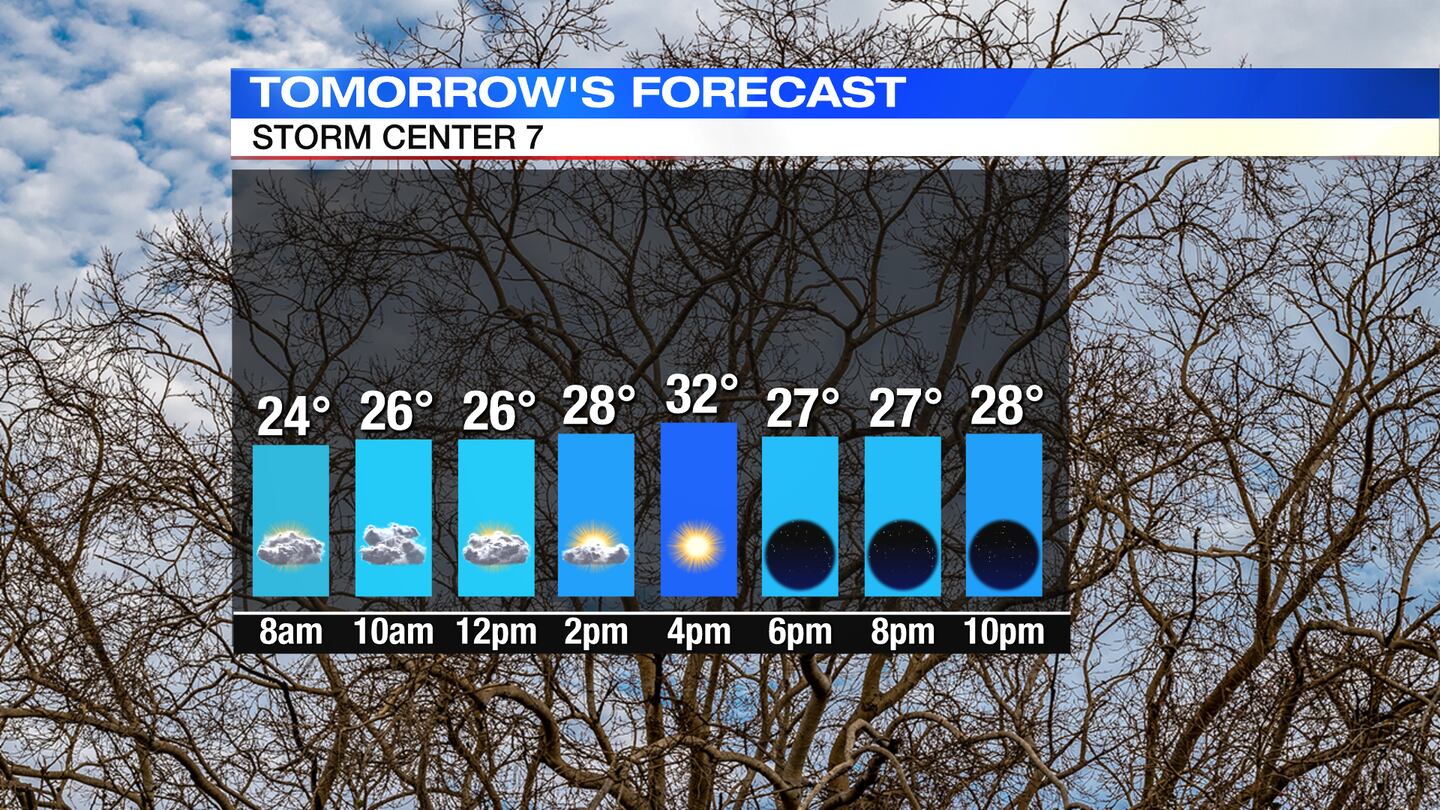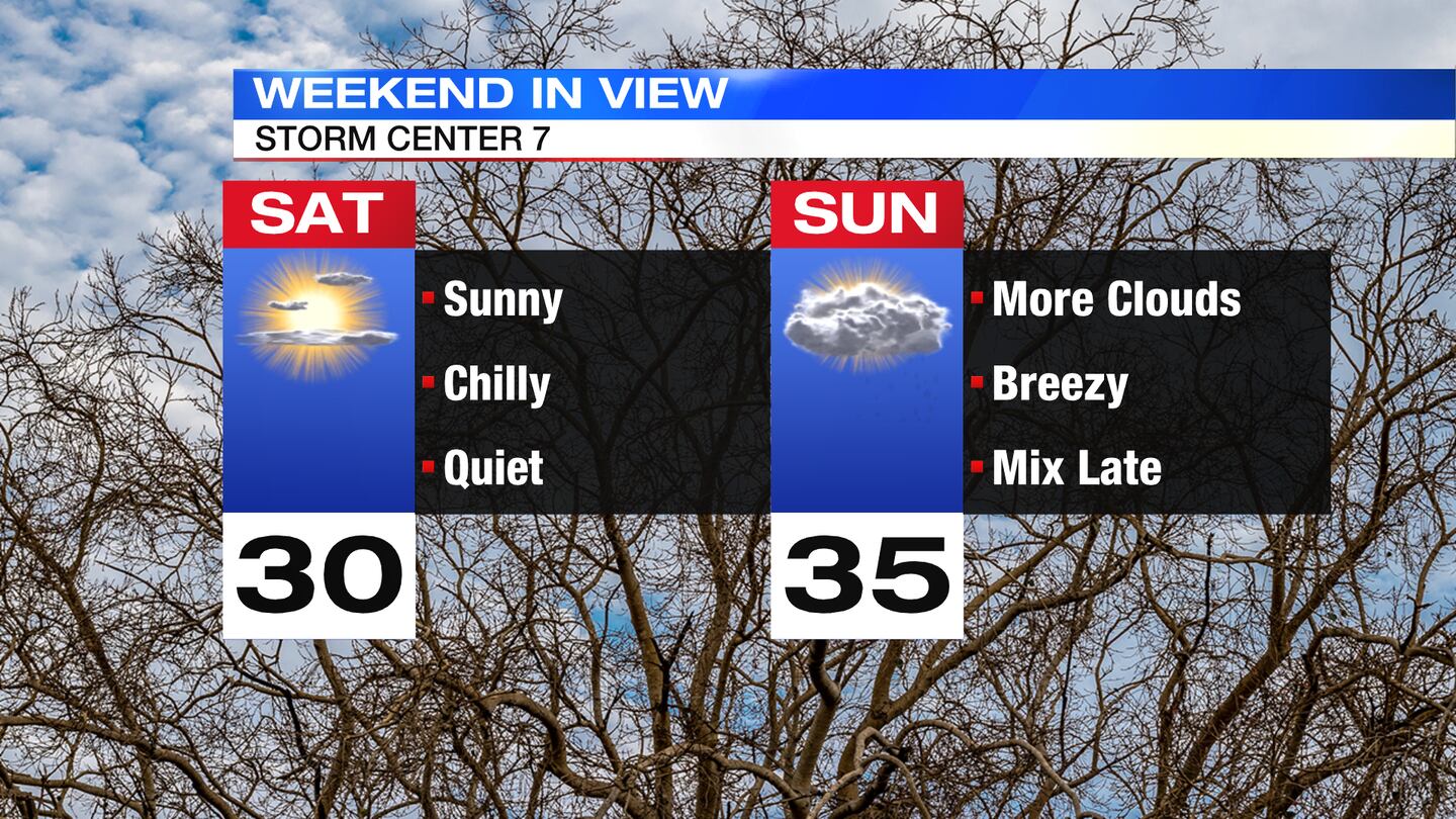 SATURDAY: Partly cloudy to mostly sunny to start the weekend, but a chilly day with highs in the lower 30s.