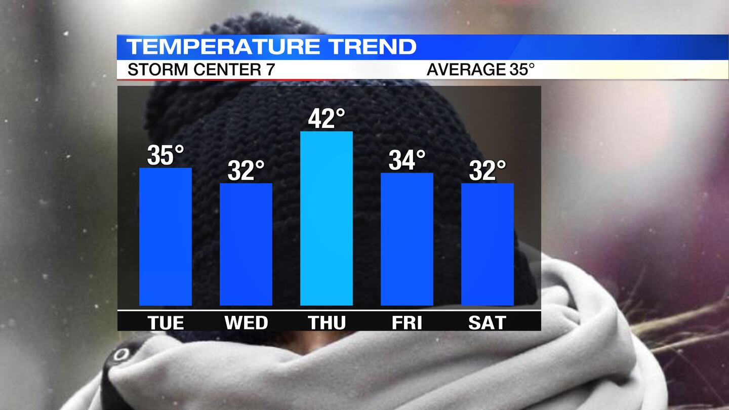 FRIDAY: Partly cloudy, back to seasonably chilly, breezy with temperatures in the middle 30s. Wind chills will be in the 20s for much of the day.
