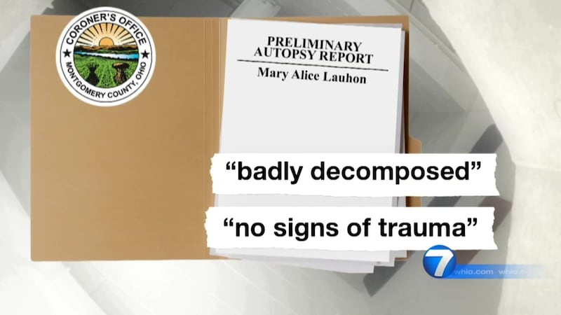 Mary Alice Lauhon's body showed "no signs of trauma," according to a preliminary Montgomery County Coroner autopsy report, obtained by the I-Team.