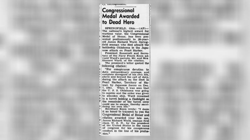 The Defense POW/MIA Accounting Agency (DPAA) says as the order was given to abandon ship, Ward sacrificed his own life by holding a flashlight so the turret crew could escape.