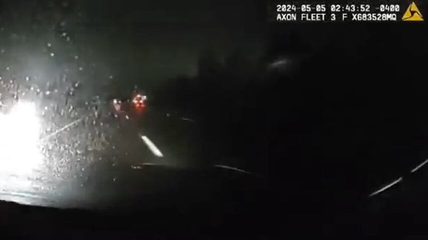 Dash camera video shows the state trooper putting on his flashing lights immediately after seeing the wrong-way driver on the shoulder and began pursuing it.