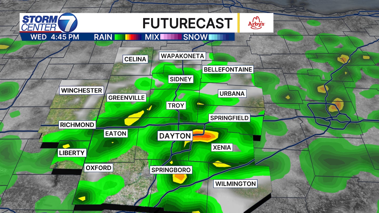 After 1 pm Wednesday, scattered coverage of storms will be over the Miami Valley until the late evening hours, Marando said.