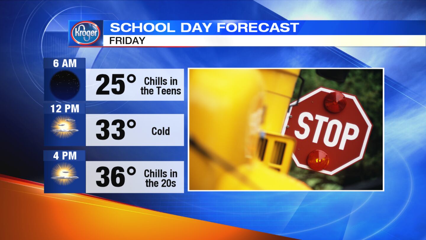 Friday: The morning will be bitter cold with temperatures in the low 20s, with wind chills in the low teens. Sunshine will return, but it will stay cold as temperatures stay in the middle 30s, which is more typical for a January afternoon. Windy conditions will also relax in the afternoon.