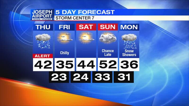 Overnight: Skies will be clear with overnight lows falling into the lower 20s, Storm Center 7 Chief Meteorologist McCall Vrydaghs said. The wind chill by morning will be in the lower teens.