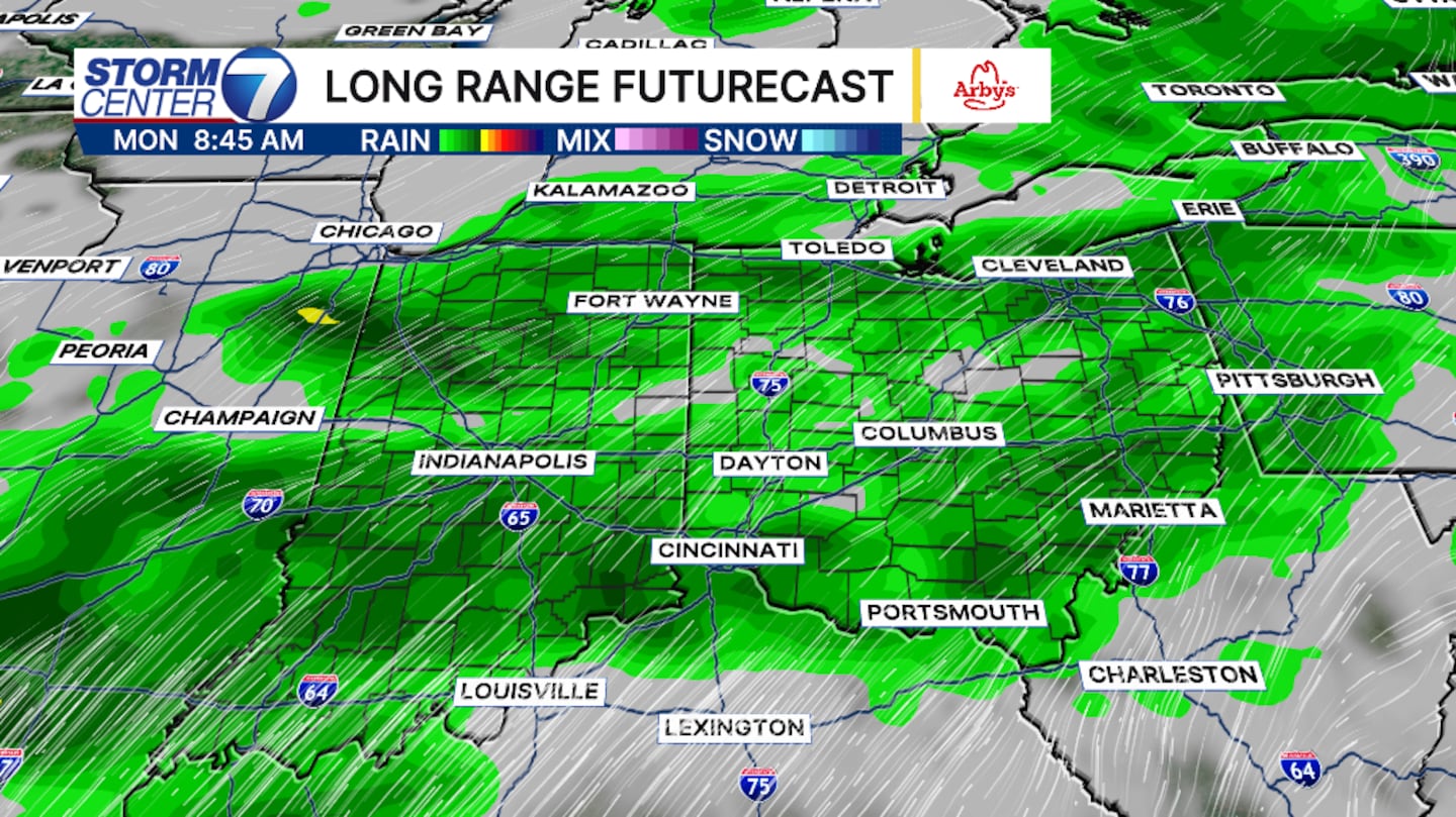 A warm front will lift back north late Sunday and into Monday. Monday will be our best chance for rain and storms.