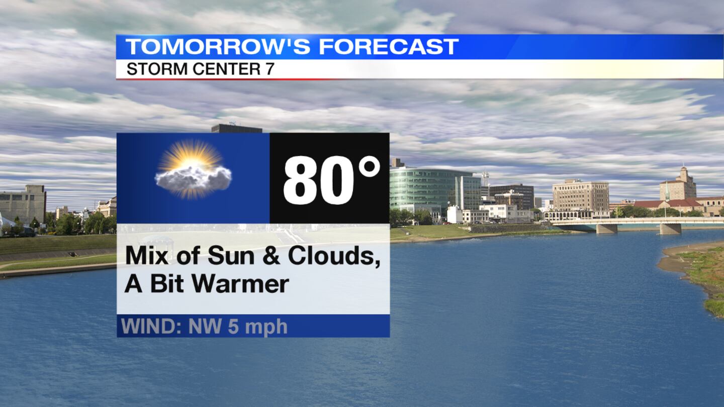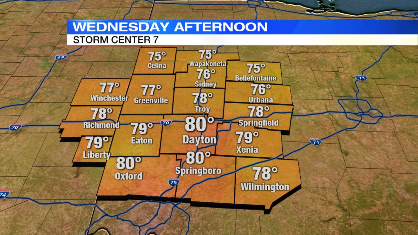 WEDNESDAY: Expect a mix of sun and clouds and warmer temperatures. Highs will be near 80 degrees.