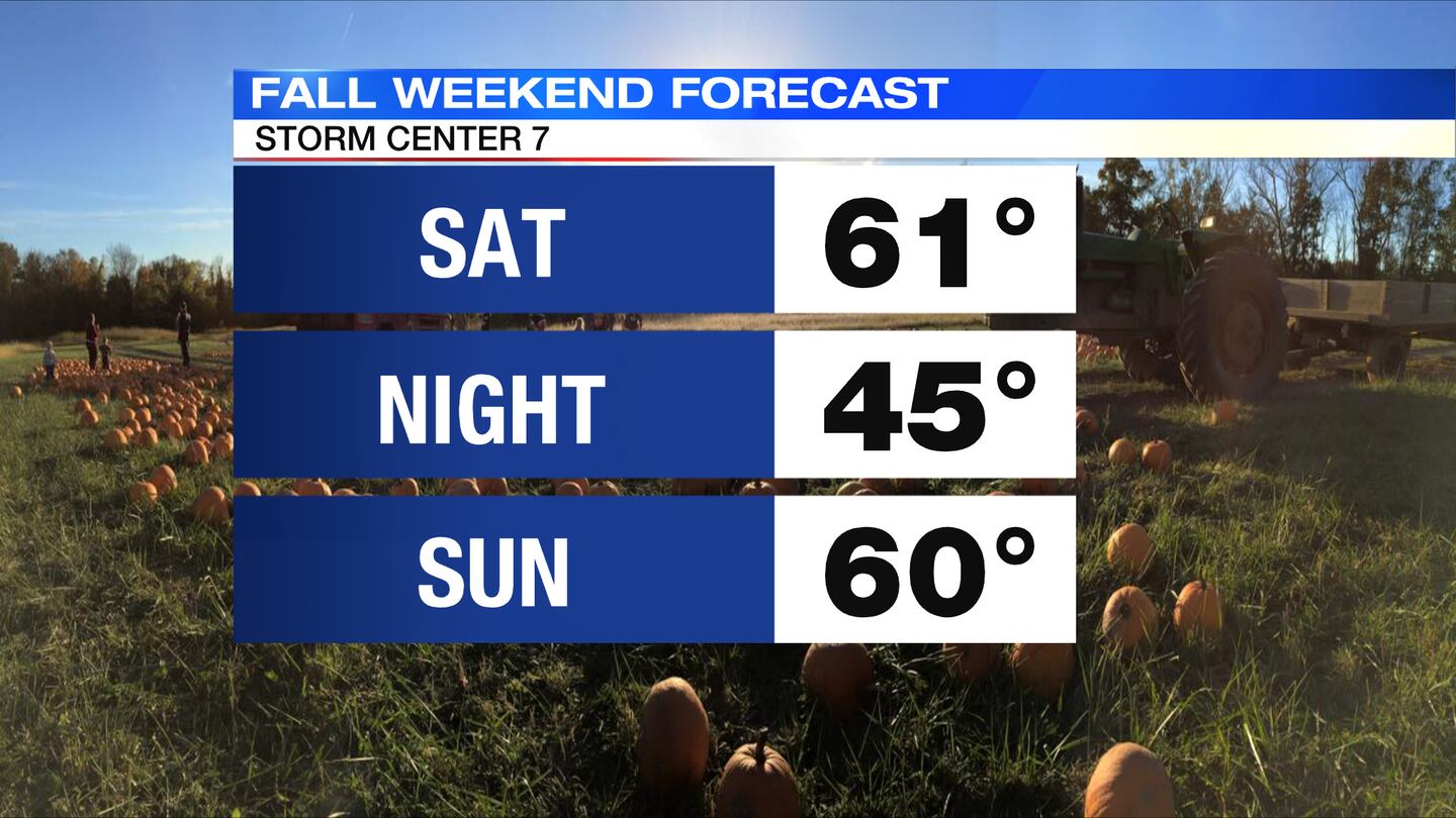 SATURDAY: Expect a chilly morning with some spotty frost. Some scattered clouds early Saturday should prevent it from becoming a widespread problem. Temperatures will start out in the upper 30s. The afternoon will climb to about 60 degrees with more sunshine returning. It will be a dry day with mostly sunny to partly cloudy skies. Clouds will increase into Saturday night.