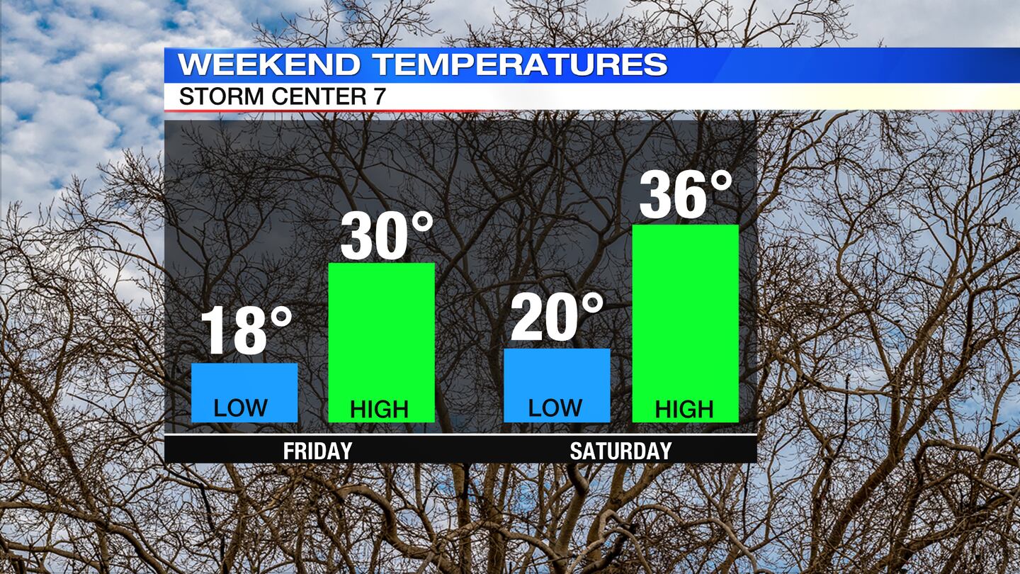 FRIDAY: Another very cold morning for Friday with temperatures rising from the teens. Skies will be mostly sunny with a high a bit closer to normal in the lower 30s. Winds relax for Friday.