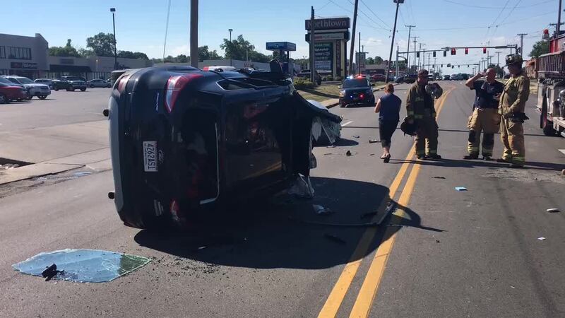 Two people riding inside an overturned Ford Escape were trapped and had to be cut from the vehicle after the crash, reported around 4:30 p.m. at the intersection of North Main Street and Castlewood Avenue in Harrison Twp.