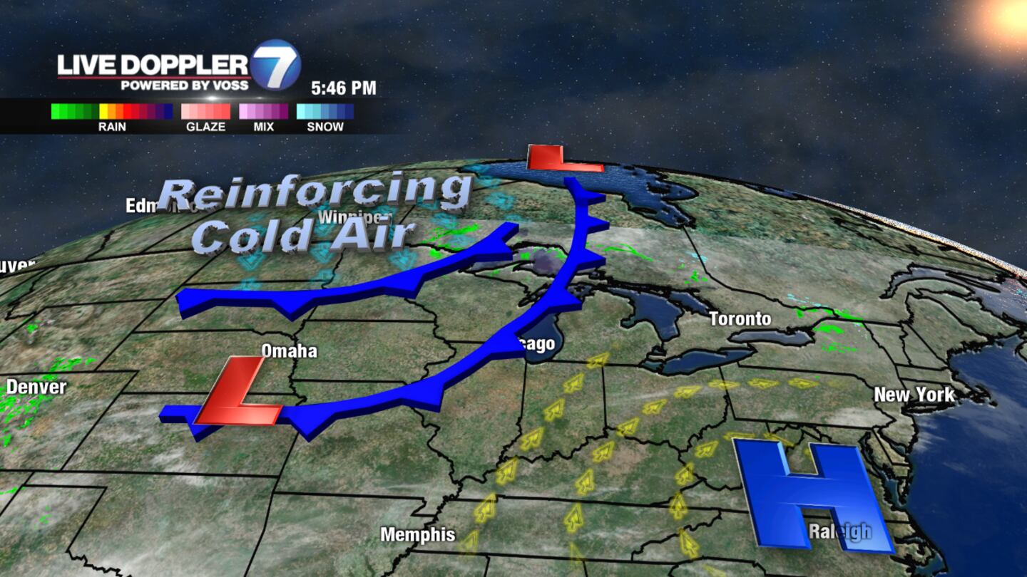 Wednesday: Another blast of unseasonably cool air arrives, despite sunny skies. Highs will only reach the upper 40s.