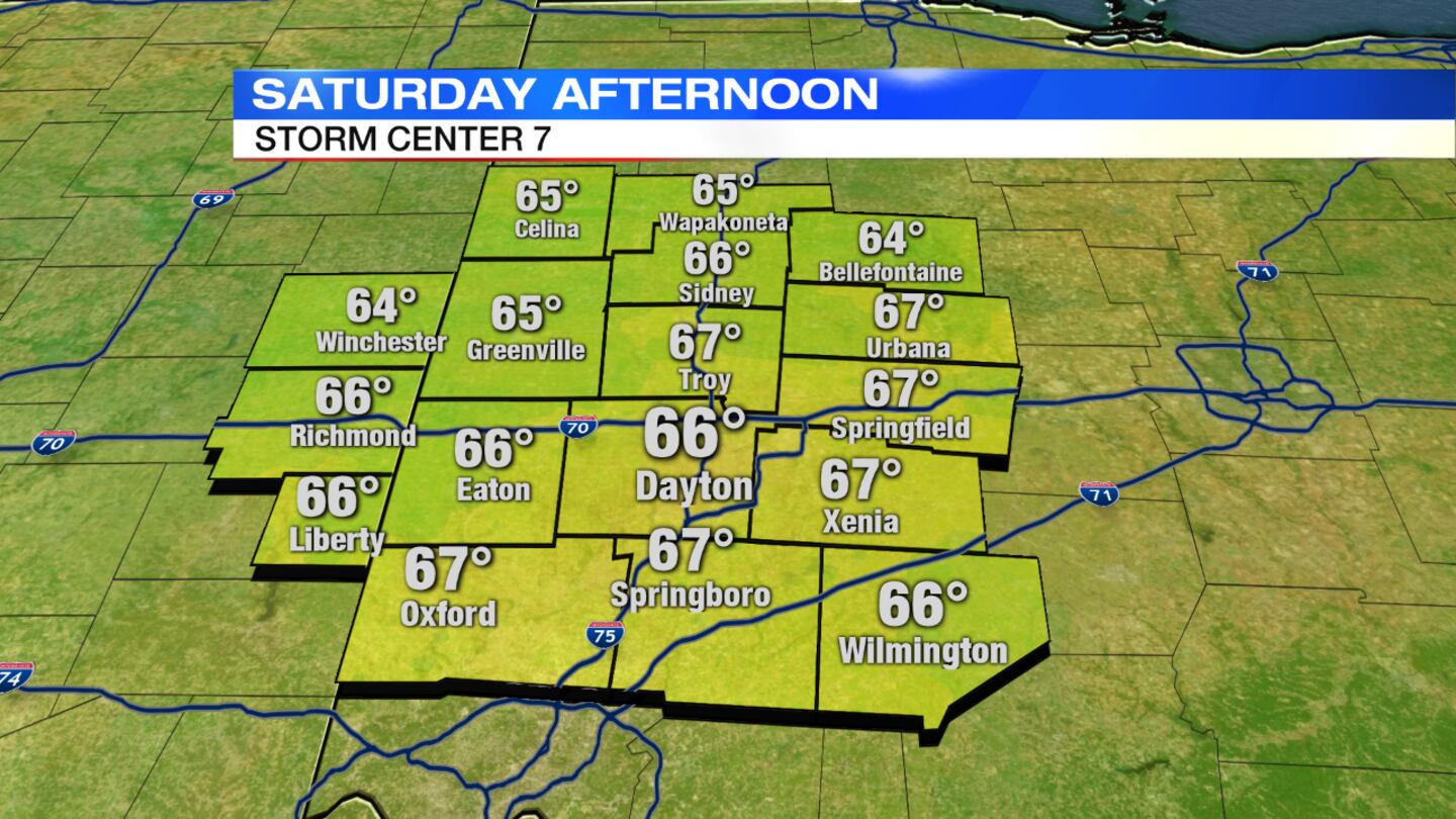 Sunday: Sunshine will return with pleasant temperatures in the lower 70s.