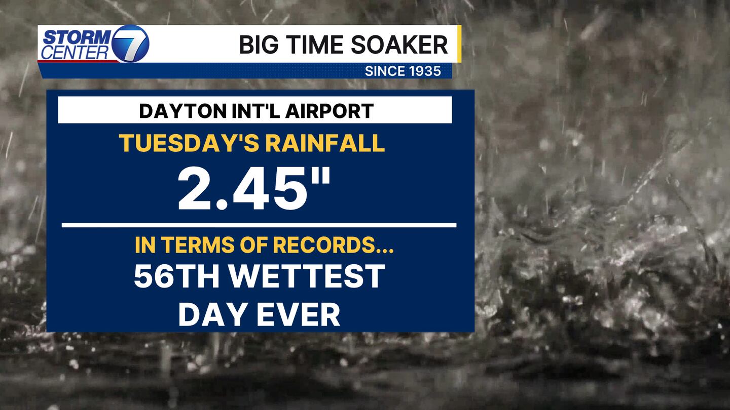 Upon further digging, I found that yesterday’s rainfall at the Dayton International Airport was the 56th wettest day in recorded history. That’s impressive! If we go back to 1935, that is over 33,000 days of recorded weather and to be in the top 60 of that is interesting!