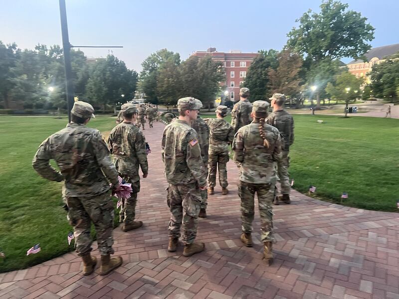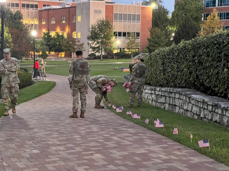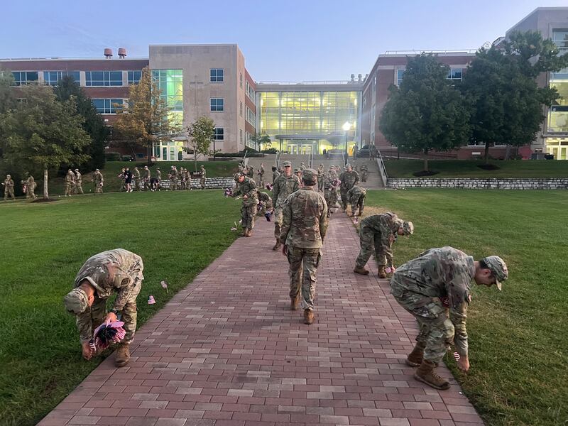 ROTC students at the University of Dayton placed 2,977 flags in the central mall to honor those who died on Sept. 11, 2001.