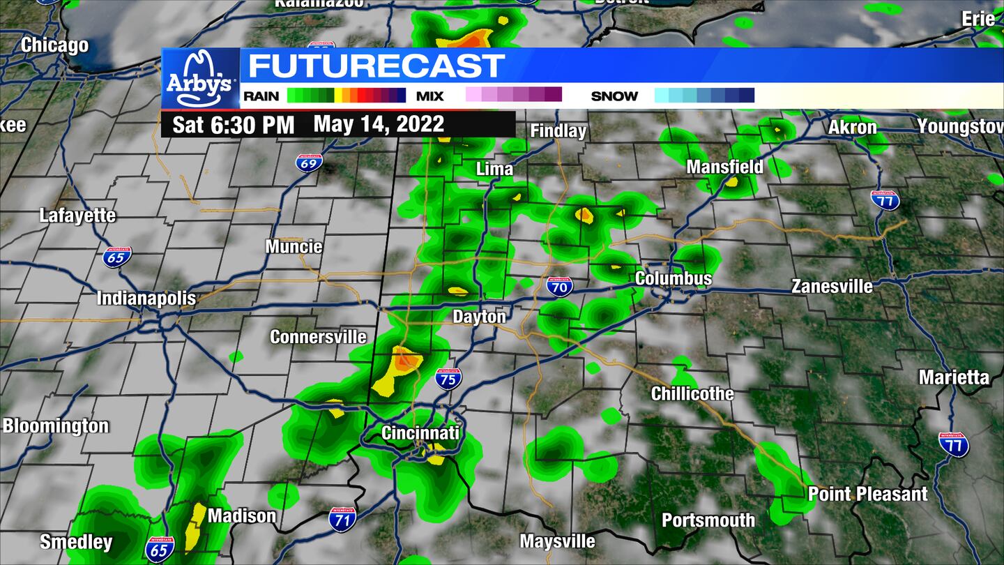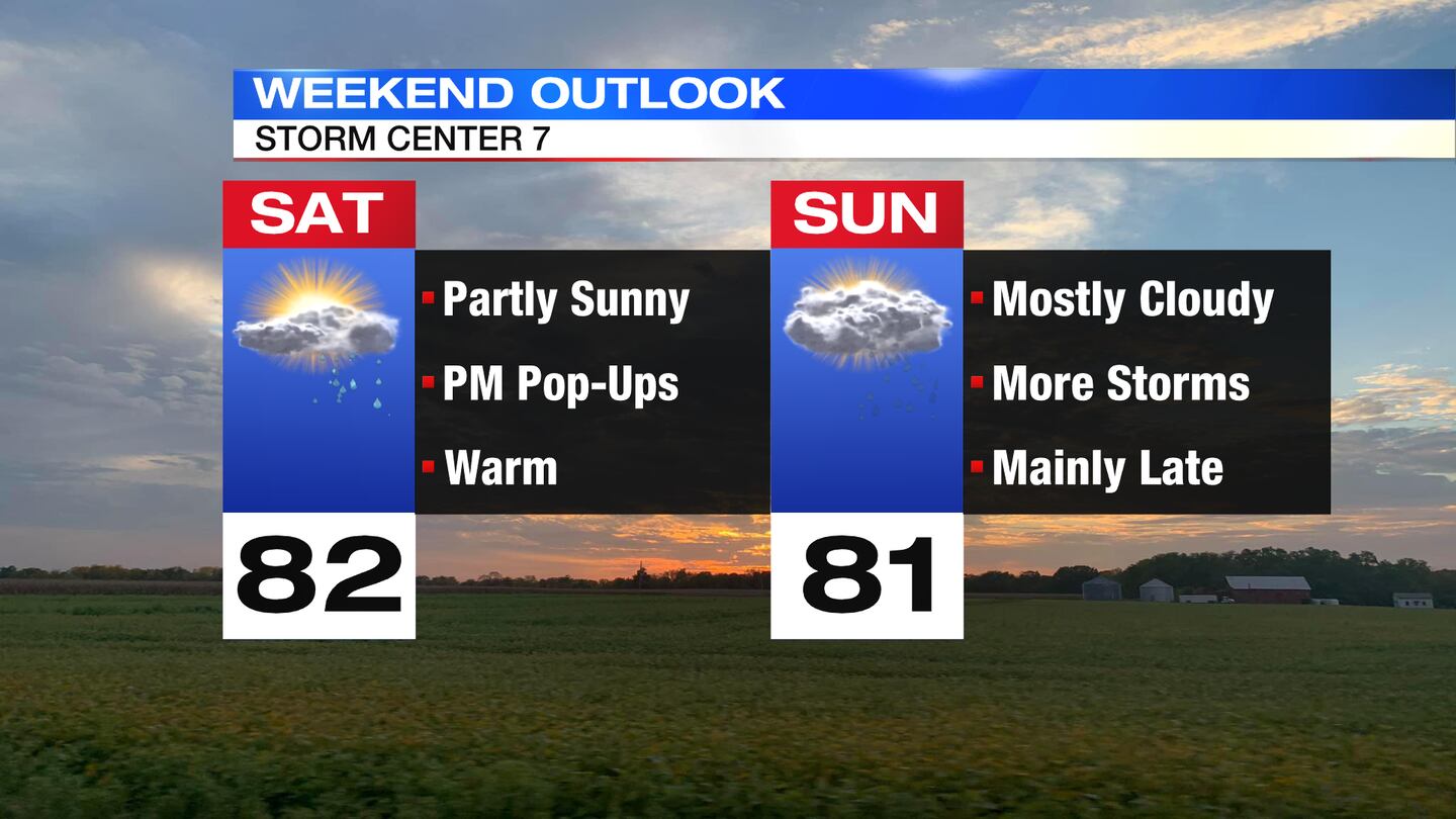 SATURDAY: Dry for most of the day. Warm in the low 80s again. Feeling a little muggy for the afternoon.