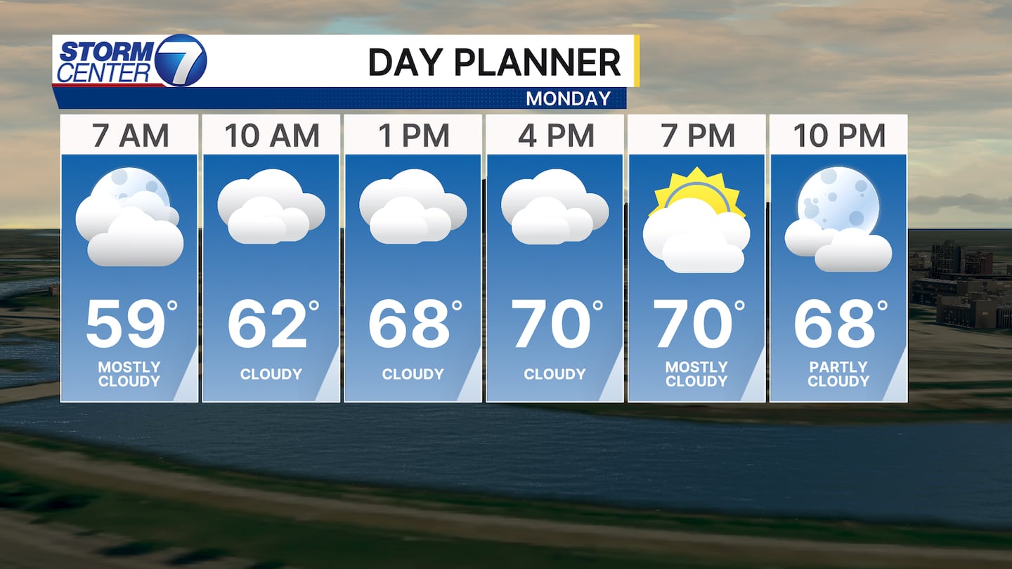 For Monday we climb into the lower 70s with a mostly cloudy sky. A few extra peeks of sunshine could bump temperatures up a couple more degrees. I have 72 as the high Monday for Dayton and Tuesday we will make a run towards 80 degrees.