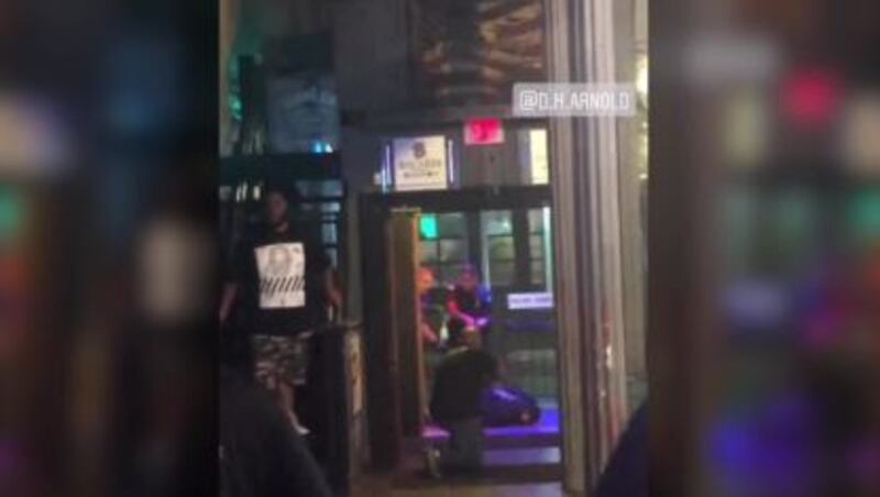 In the video, which was taken inside of Ned Peppers, people are scrambling to move to the back of the bar after gunfire is heard in the background.