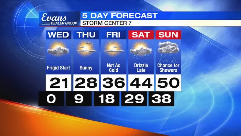 WEDNESDAY: Another cold day is in the forecast although more sunshine is expected. Highs will reach to near 20 degrees.