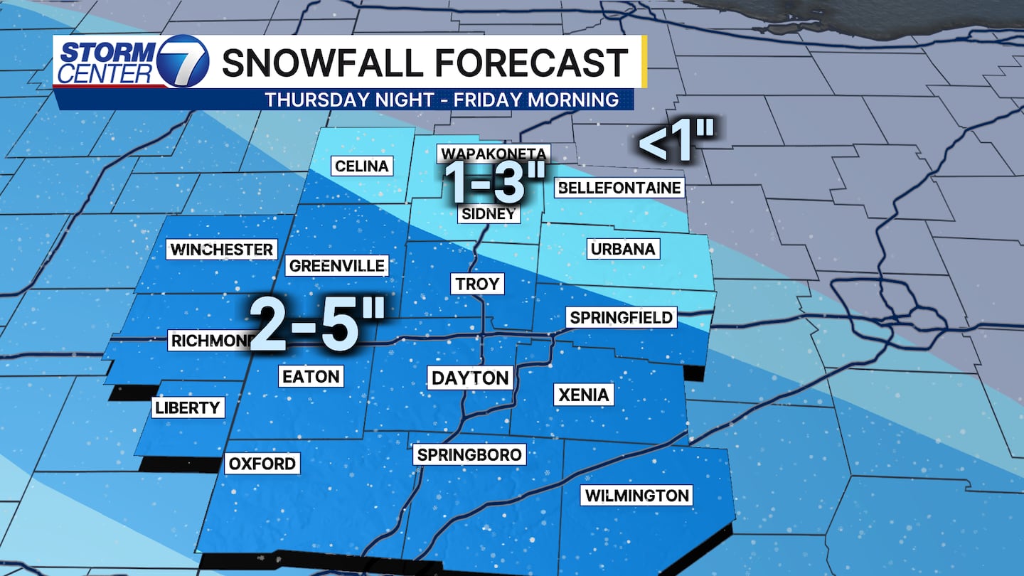 Accumulations of 2-5 inches appear possible for the Dayton area. Lighter totals look more likely further northeast.