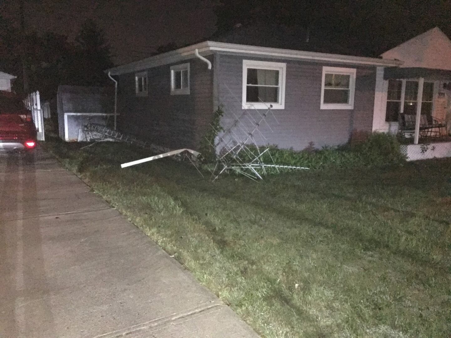 The residents were not injured, though there was apparent damage to the structure and antennas in the yard.