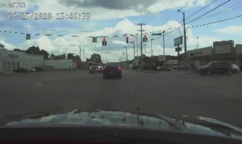 The detective observed the vehicle stopped to turn onto North Dixie Drive from a parking lot just north of Needmore where a marked sheriff’s car approached the Ford with lights and siren activated. The detective’s car, which had its emergency lights activated, was struck by the Ford and pushed back.