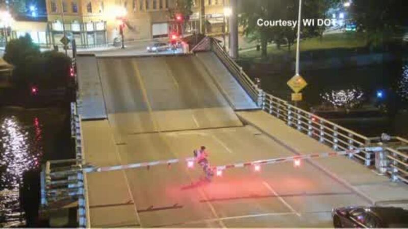 Wisconsin Department of Transportation surveillance video shot July Fourth shows the woman ignoring the barrier and red flashing lights at the bridge in Menasha, and apparently not noticing that it was already cranking into action.