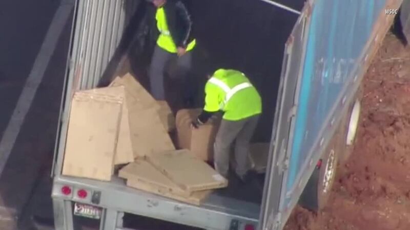 People could be seen unloading boxes from the Amazon truck onto another, WSOC reported.